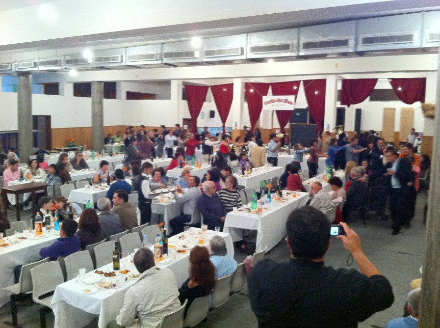 Depois dos parabéns, foi dado lugar à musica, e a festa aqueceu, com os sócios a levantarem-se das mesas, e a fazer o já tradicional comboio.